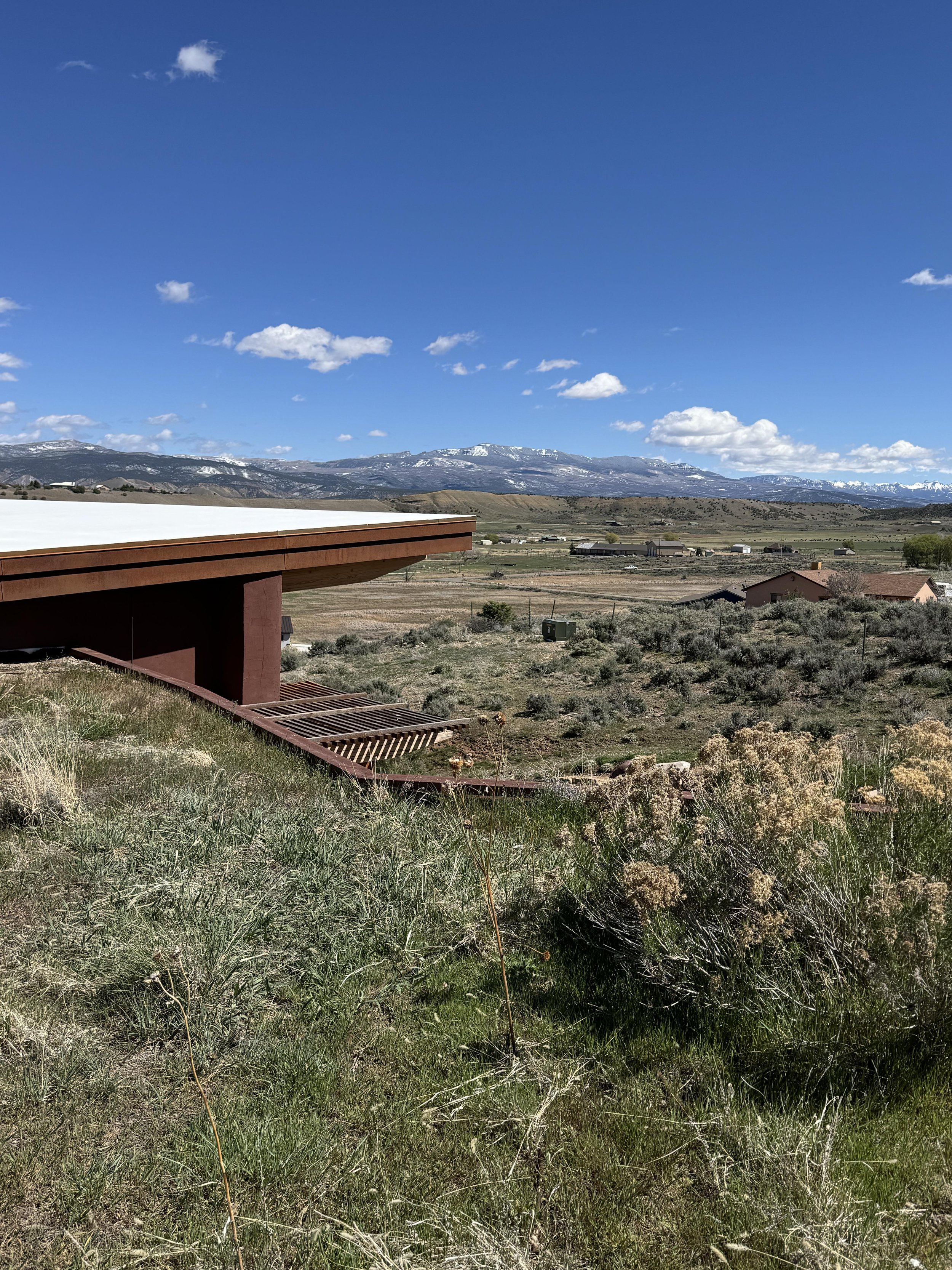 This regenerative, sustainably built home was made from local soil, with a western green cactus and native grass roof. The Compressed Earth Block home with blocks by Arizona Adobe completely nestled in the landscape of the western slope of Colorado. South facing winter courtyard planted with deciduous trees with roof overhangs designed to provide shade from the harsh summer sun and allow the slanted winter light to penetrate deeply into the thick earthen walls when the leaves have gone. The studio and living space also frame a summer courtyard. Shaded with cottonwoods and a stream flowing by, the summer courtyard provides respite from the heat as well as a gentle winter microclimate of moisture and habitat.